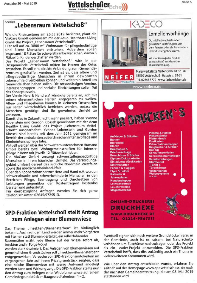 Ein wichtiges Projekt in der Region ist der „Lebensraum Vettelschoß“. Hier entsteht Wohnraum für: